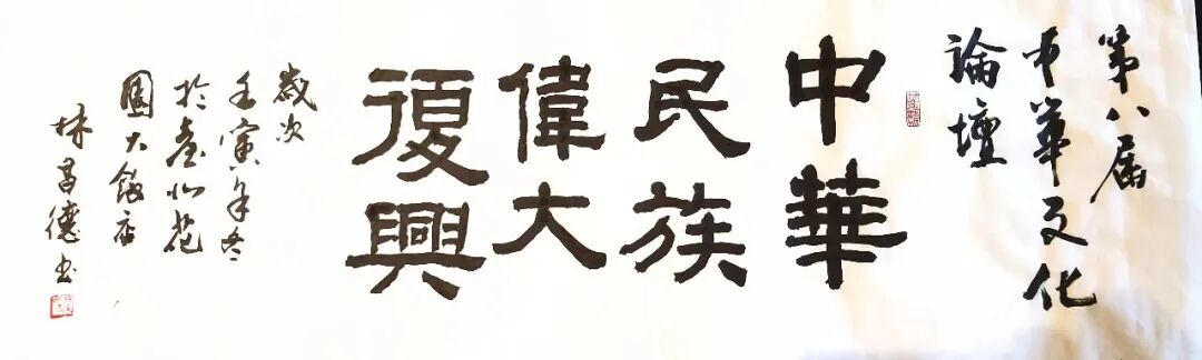 在臺北會場,還有藝術(shù)家以一副“中華民族偉大復興”墨寶祝賀第八屆中華文化論壇圓滿舉辦,也希冀未來兩岸關(guān)系能越來越好,希望中華民族偉大復興早日實現(xiàn)。