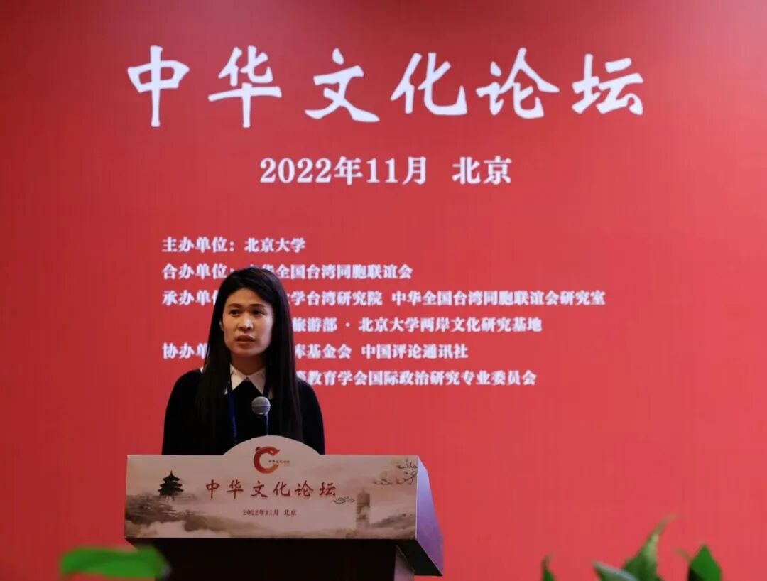 在主旨發(fā)言階段,臺北星之國際有限公司董事長許若薇以《脫貧勵志影劇新起點-“扳手阿發(fā)”》為題,用真人真事講述,從傳統(tǒng)中創(chuàng)新,給人帶來滿滿的正能量,寄語兩岸青年加強合作,人只要努力,夢想是可以成真的。南島語族文化溯源研究會研究員李晏芮為大家?guī)怼兑灰聨?臺灣原住民溯源》的演講,他指出遠古時代臺灣與大陸本相連,因地殼運動,才形成臺灣海峽,臺灣島與大陸才分離。兩岸有著同根同源的血脈,有著一衣帶水源遠流長的歷史延續(xù)。他通過解讀臺灣原住民課題,印證祖國是一脈相承不可分割的,希望海峽兩岸同仁,今后繼續(xù)傳承和弘揚同根同源的五千年璀璨文化,為完成祖國統(tǒng)一大業(yè),貢獻一份力量。高雄師范大學人力與知識管理研究所教授劉廷揚發(fā)表《天人合一思想與ESG思潮的對話》,他提出“天人合一”是中國哲學思想的精髓,作為中華文化要代代相傳,懷抱謙卑之心。在新發(fā)展格局之下,ESG建設(shè)是聯(lián)合國推動可持續(xù)發(fā)展的關(guān)鍵引擎,我們祖先在《道德經(jīng)》中早有記載,“人法地、地法天、天法道、道法自然”,人與自然和諧共生,愿我們不負青山綠水,共創(chuàng)美好未來。